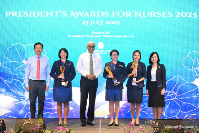 The 2025 President’s Award for Nurses recipients in Singapore were Ms. Cindy Chua, Ms. Clarice Wee, and Ms. Yvonne Yap, who were honored by President Tharman Shanmugaratnam for their outstanding contributions to nursing in patient care, education, research, and administration.